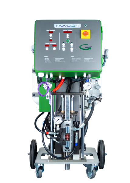 The new NOVAG I hydraulically driven proportioning unit has been designed and manufactured to fulfil the most demanding requirements of industrial foam in place applications of two component systems requiring high dosing precision to assure the best mixing quality of the chemical components. Its particular configuration facilitates easy access to all its components, simplifies the control functions and significantly reduces maintenance time.