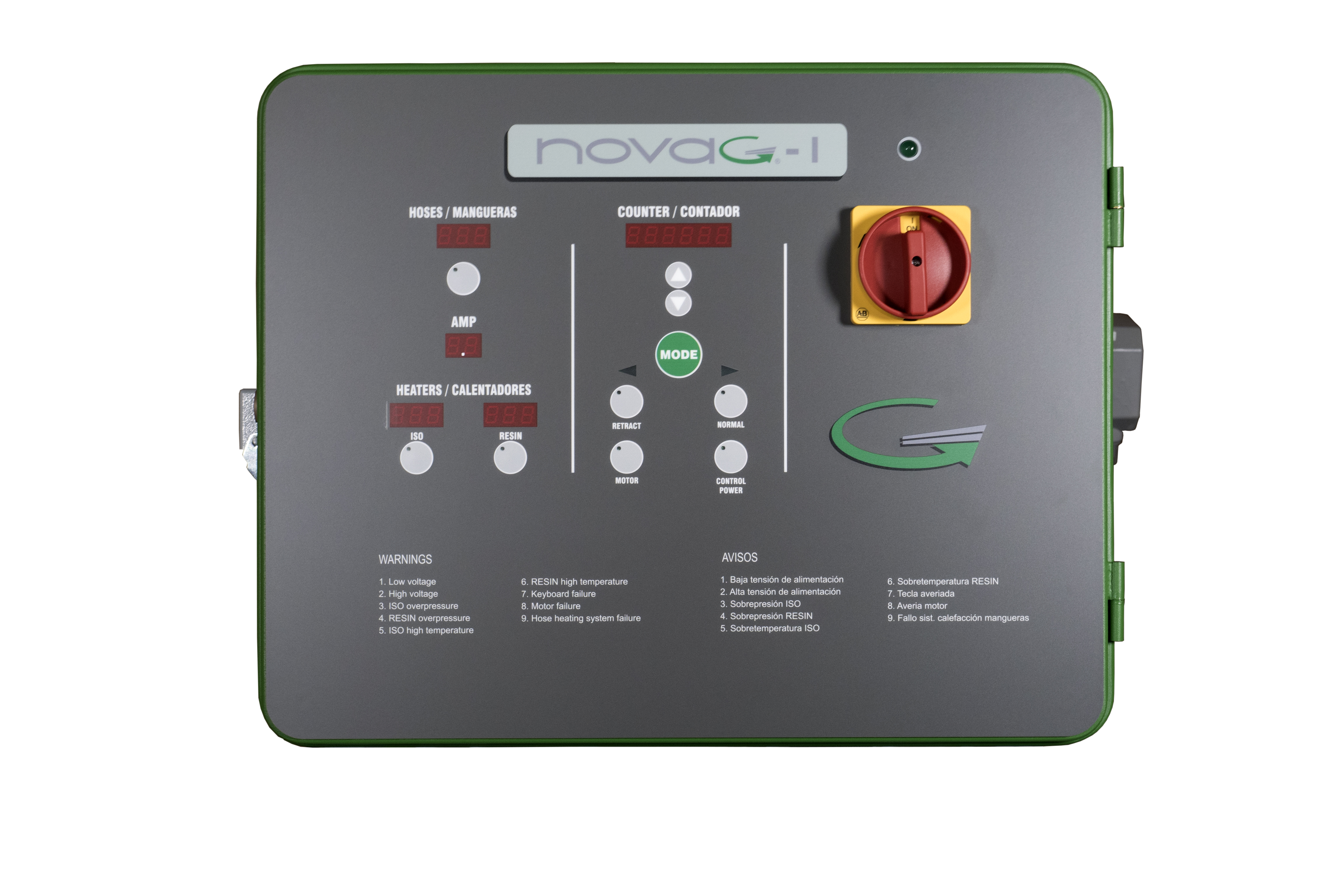 The control panel consists of a touch screen that incorporates specially designed software to facilitate the selection and control of all working parameters in quick and easy manner. A sophisticated alarm system warns the operation of any error in the process to ensure the right application of the products.