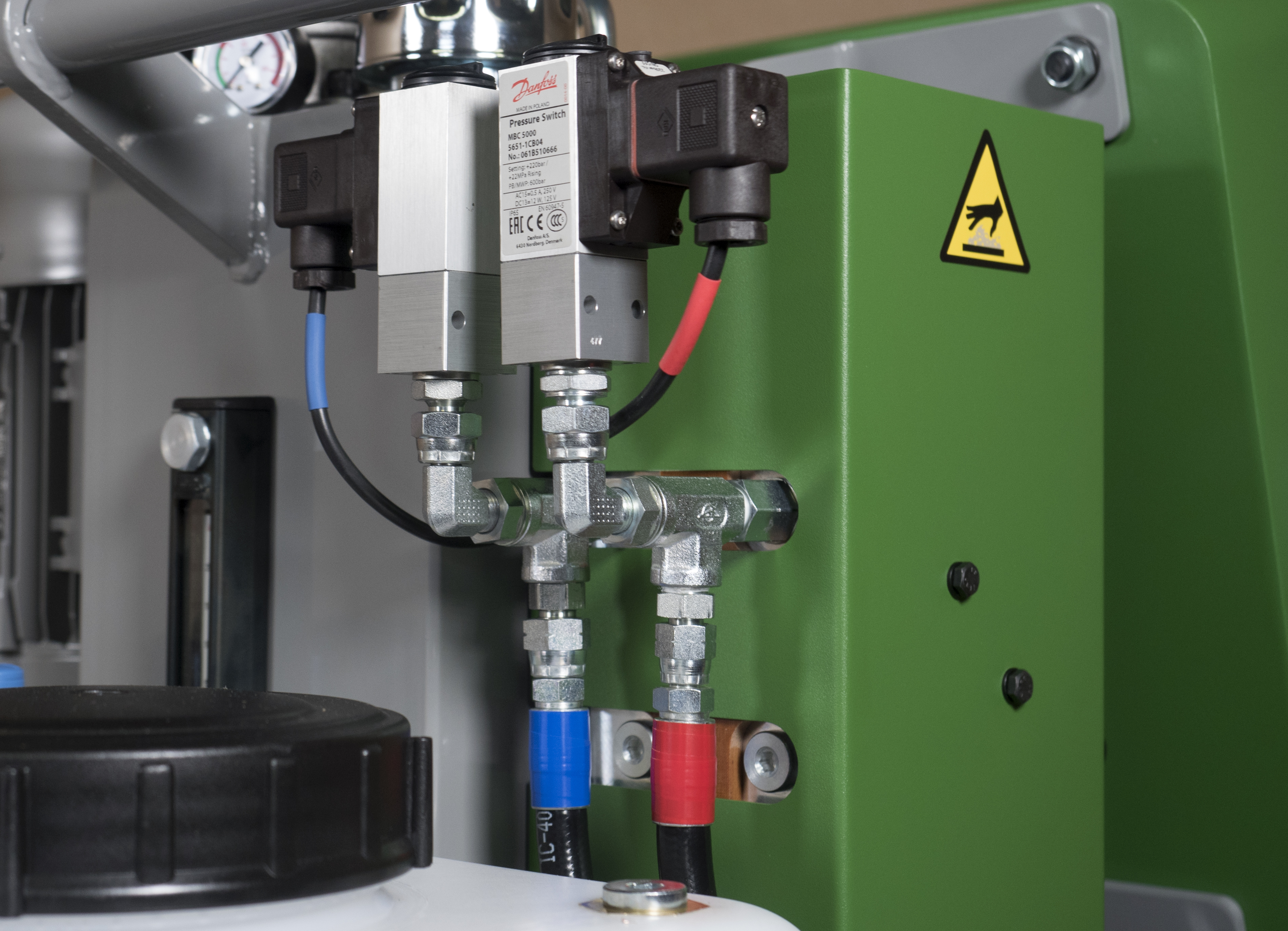 As an additional feature, a phase connection alarm is incorporated into the design to avoid costly repairs from errors or mistakes when plugging the machine into the electrical supply.